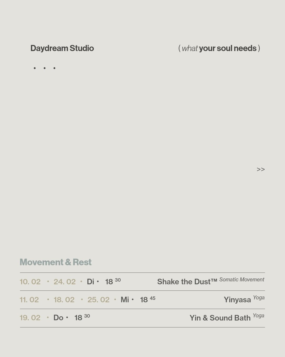 From photoshoots and kitchen productions to workshops, retreats, brand launches, and private events. Daydream Studio is available for mindfulness sessions, yoga and movement classes, circles and rituals, day retreats, private gatherings, and professional trainings โ always hosted or curated with care.